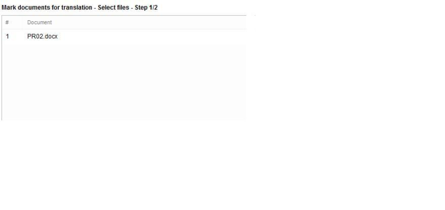 The Mark document for translation – Configuration - Step 1/2 window opens: