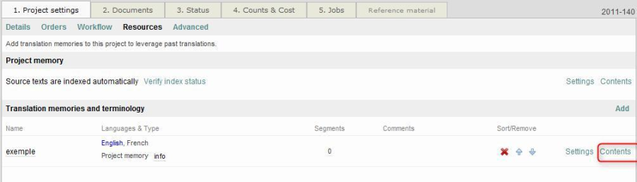 Some of these configurations are the set of resources to be attached, the word count profiles to perform the pretranslation analysis, the workflow of tasks to be performed, etc. This process is described in the sections project templates and management and creation of order requests.
