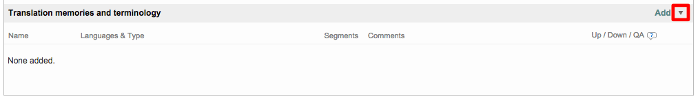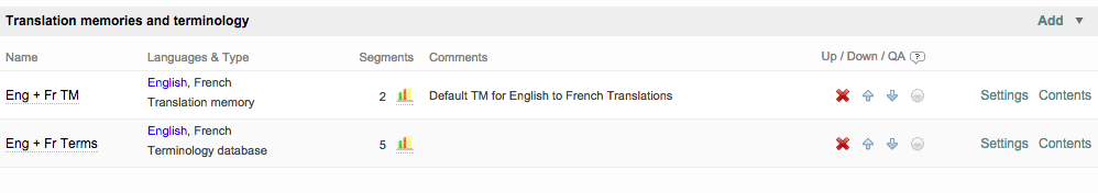 You will see these items displayed in the Translation memories and terminology section, as shown below: