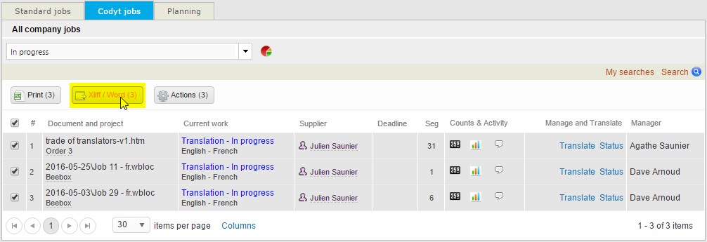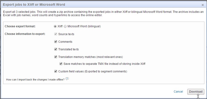How to export Codyt jobs in XLIFF format or Word to work offline