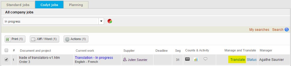 Go to the related job you want to deliver and click ‘Translate’ to open the online translation editor:
