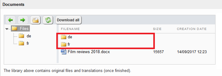 If you requested translations for more than one language, the files will be available under their respective target language folder.