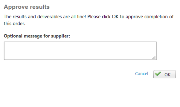 Once you are satisfied with the work delivered, click Approve results and you will have the possibility to share your experience sending a final message to your service provider.