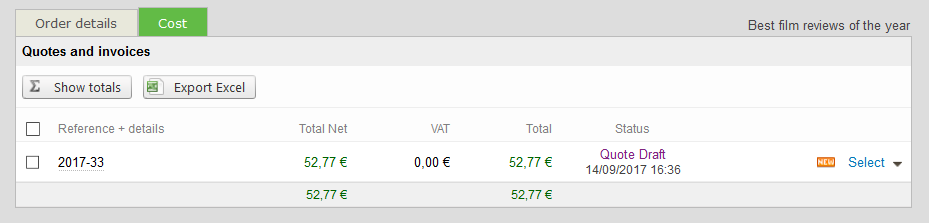 View the final cost of your invoice, as soon as it is available under the Cost tab. The total cost will also be displayed directly on this page.