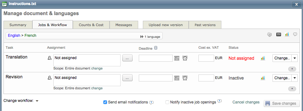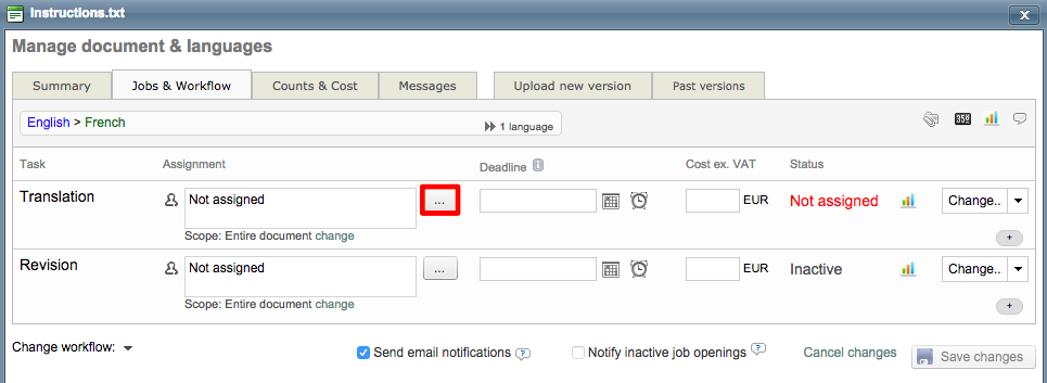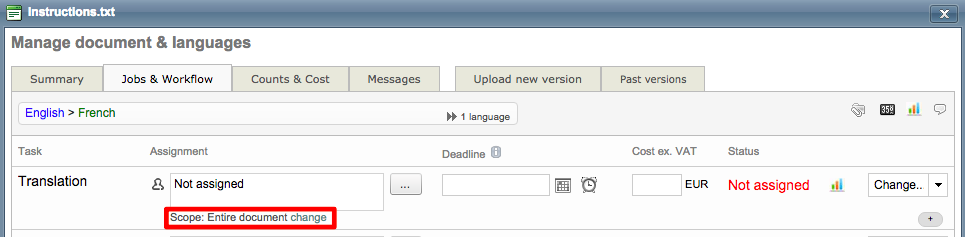 If you want multiple suppliers to translate or work in the document (for example) click on Scope: Entire document change.
