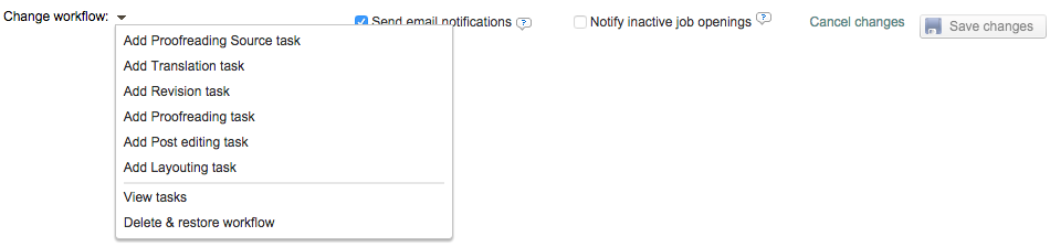 To change the workflow, click on the arrow next to Change workflow ▼ at the bottom left corner. A list of additional tasks will be prompted: