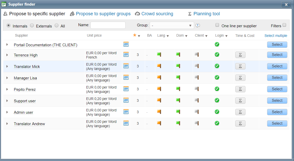 Learn how to find the supplier that better qualifies for a job by making full use of the filters proposed in this popup.