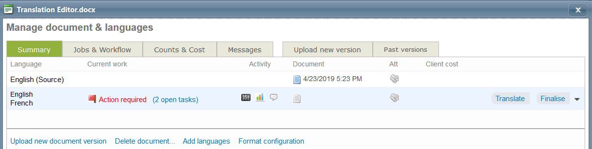 In the Manage document & languages page, click on the Jobs and Workflow Tab.