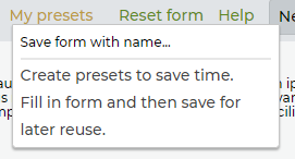 My presets - This option allows you to create preset configurations for your orders. You can save your current selection including source, target languages, and other options for future reuse. This allows you to save time when sending multiple orders. Once you have created your preset, you will find it in the list of presets when click My presets.
