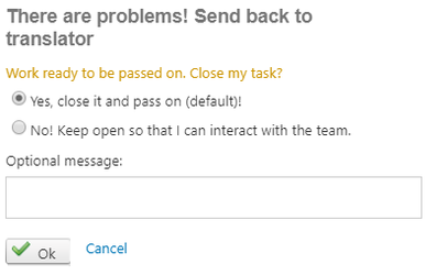 You will be asked if you want to work in parallel with the translator or wait for the translation to be completed before you are notified again.