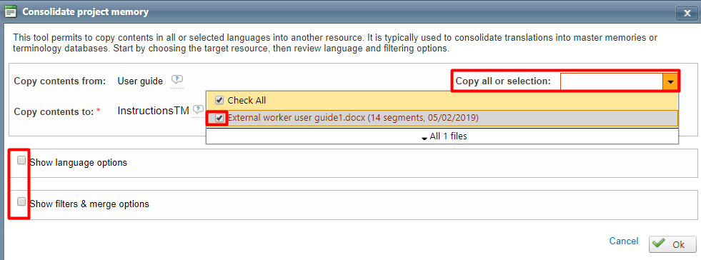 Don't forget to use the right language options and filters when running your operation, since you will be updating existing segments in the destination resource (named under the field "Copy contents to").