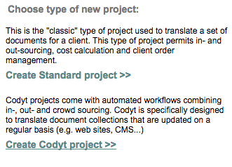 For more information about creating projects, please see the following pages in the Getting Started Guide: Creation of Standard Projects, Creation of CoDyt Projects, and Upload Your Documents.