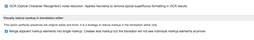 When translating editable/searchable PDF's, an extensive amount of markup and formatting tags are typically present. Before translating an editable PDF, the following steps must be performed in the system to reduce markup: