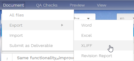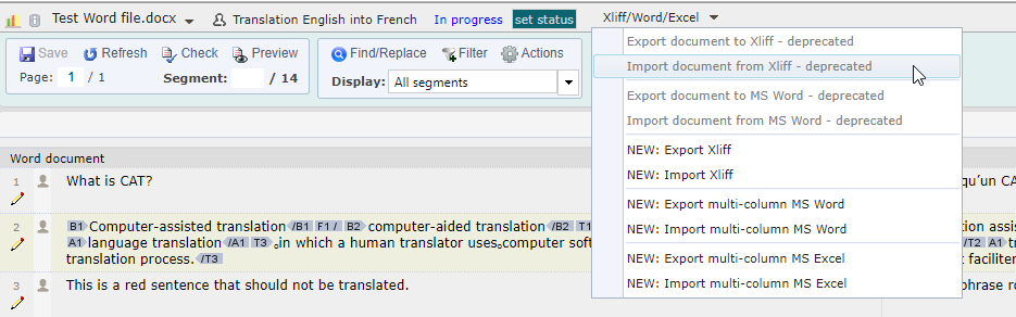 Please note as of 04/10/2018, any exported Xliff (with the option "Xliff" in job page or with option "Export document to Xliff" in the old editor) files need to be imported via the option "Import document from Xliff - deprecated" in the Old Editor.