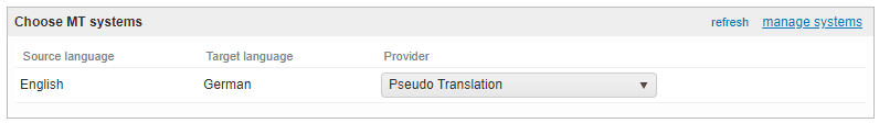 The provider, meaning the MT engine to be used (click on manage systems if you need to configure another MT system).