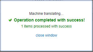 Once the configuration is done, you click on OK to launch the machine translation. When the operation is successfully finished, a confirmation message will appear.