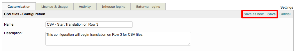 Step 1: You will need to click on Edit to begin making changes to the chosen CSV configuration. If only the Default configuration is present for CSV files, simply edit it and then Save as New when finished.