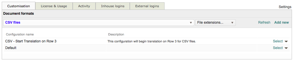 To do this, you will need to go to Settings > Translation Settings > Document Formats, choose the CSV format type, and then either modify an existing one or create a new one from the Default Configuration for these scenarios. Then follow the steps below: