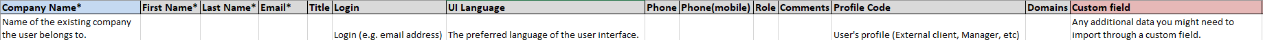 This template enables you to import user profiles into your master company, supplier, or client companies.