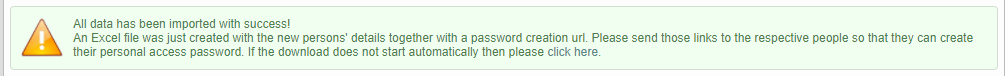 A report file will be generated with all user details ready to be shared. For confidentiality reasons, each user will have a personal link to set the password manually.