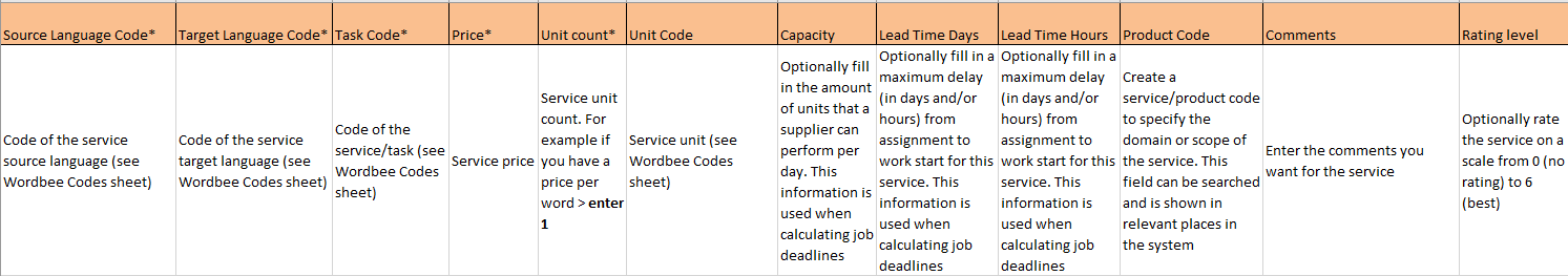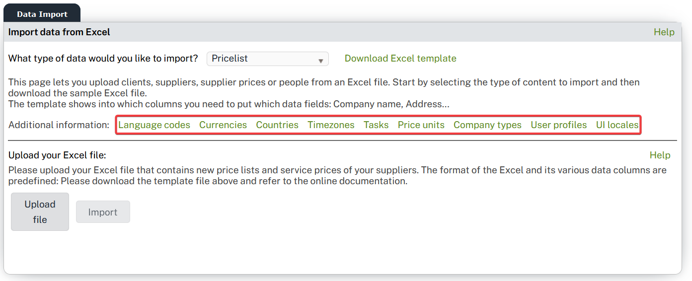 Make sure the task codes you want to import are already enabled in the Wordbee Platform. See Task Categories for more information.