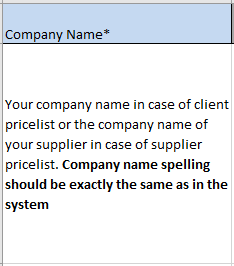 Clients and suppliers' pricelists template can only be imported if the 'Clients or Suppliers' template has been uploaded first, as you need the users' company details to be created in the system to be able to import related pricelists information.
