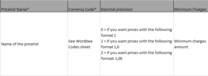 This template lets you import your clients and suppliers' pricelists. The clients pricelists are the ones that you create and apply to your clients. The suppliers pricelists on the other hand, correspond to the prices and discounts you have negotiated with your suppliers so as to be able to directly see how much you will pay for a job when assigning a job.