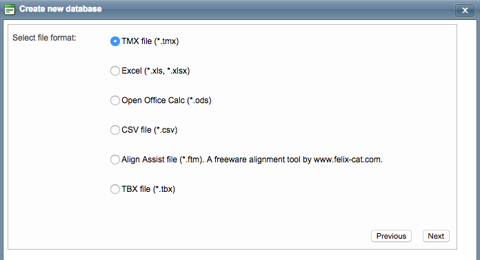 For TMX, Align Assist, and TBX files, you will immediately be asked to select the file after choosing the format. Step 3 will be skipped for these file formats and you should move on to Step 4.