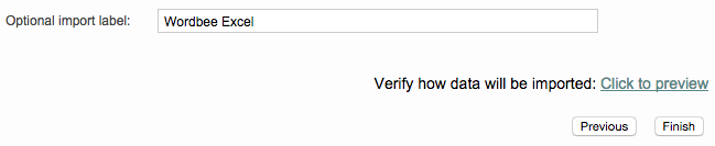 Wordbee Translator provides the option to preview the data prior to importing. Use the Click to Preview link to open a browser and view this information. Once all configuration steps have been completed, click on Finish to complete the translation memory import.