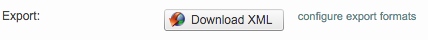 - Download XML - This option can be used to export the documents in XML format for use within another application or for other purposes. Just click on Download XML or Configure Export Formats to make changes prior to downloading the file.
