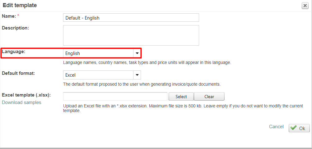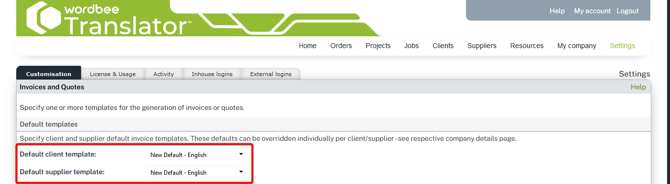 If you wish to apply this new template as client or supplier default, remember to update the upper part of the platform page, so that this document is borrowed right away when manually creating the templates or from the Invoice production tool.
