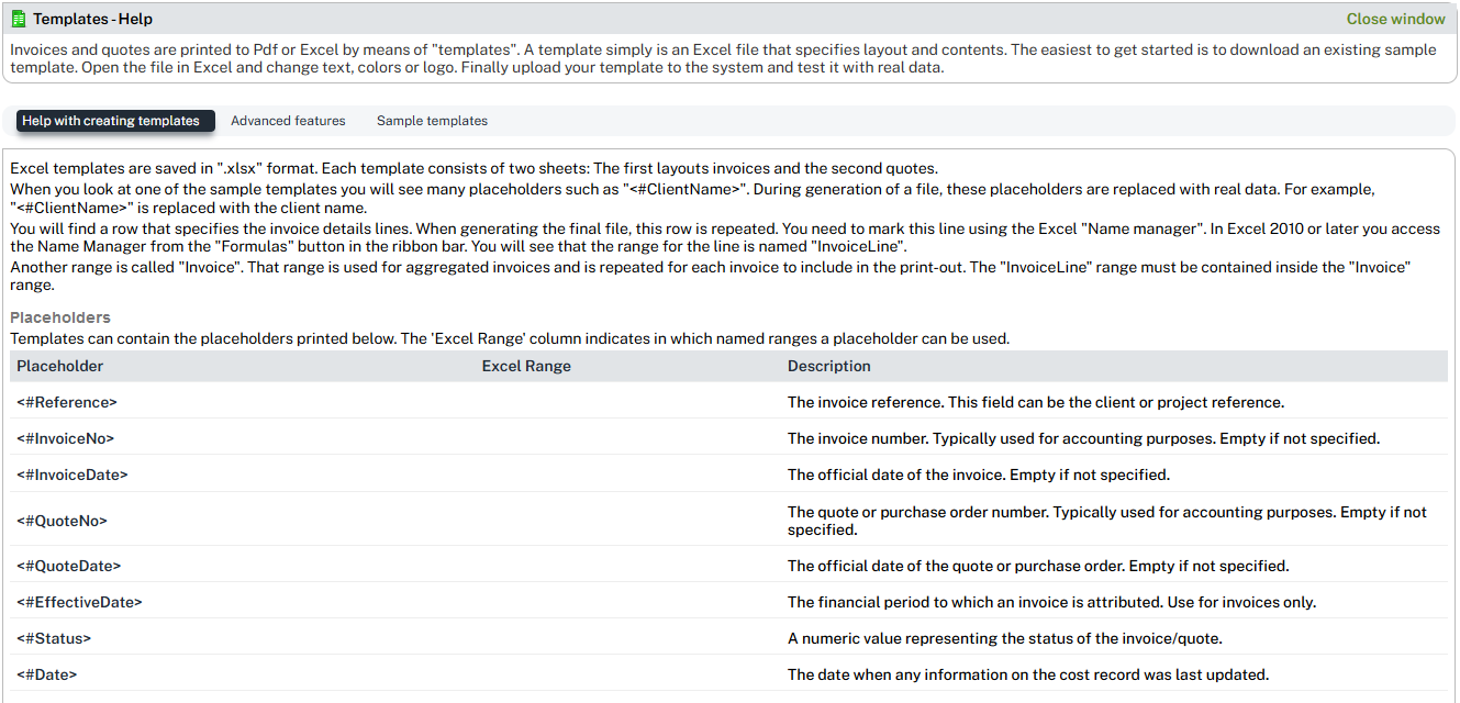 You can modify all the formatting of your text and placeholders and even add formulas or other Excel elements you may want to include in the invoices/quotes you generate.