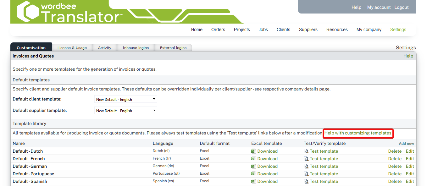 As soon as you upload the template, you will be able to test it in the Template testing tool with any existing quote/invoice from any client or supplier.