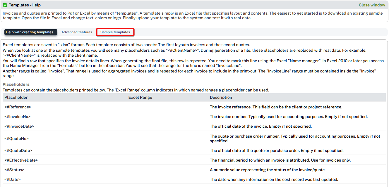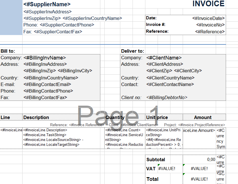 Notice that you have a separate sheet for the Invoice and the Quote template, where you can define different variables and texts for each one.