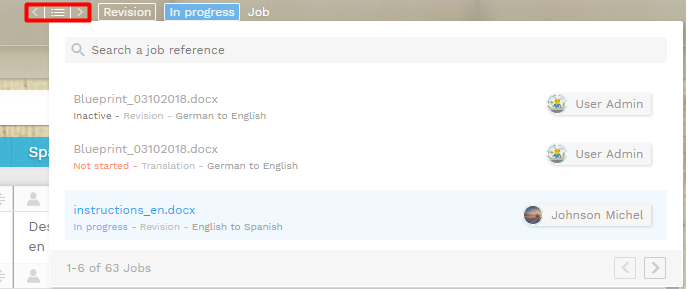 This element gives users visibility and direct access to other jobs available for them. By clicking on the job's name or searching for a specific job reference they can open another job and continue working.