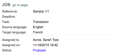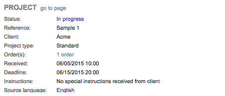 Document and Project - Name of the project and list of all the documents attached to it. Click on the name of the project to open a pop-up window from which you can see the project's summary (client /status /deadline…); Click on go to page to see the project's details (see: Defining project details).