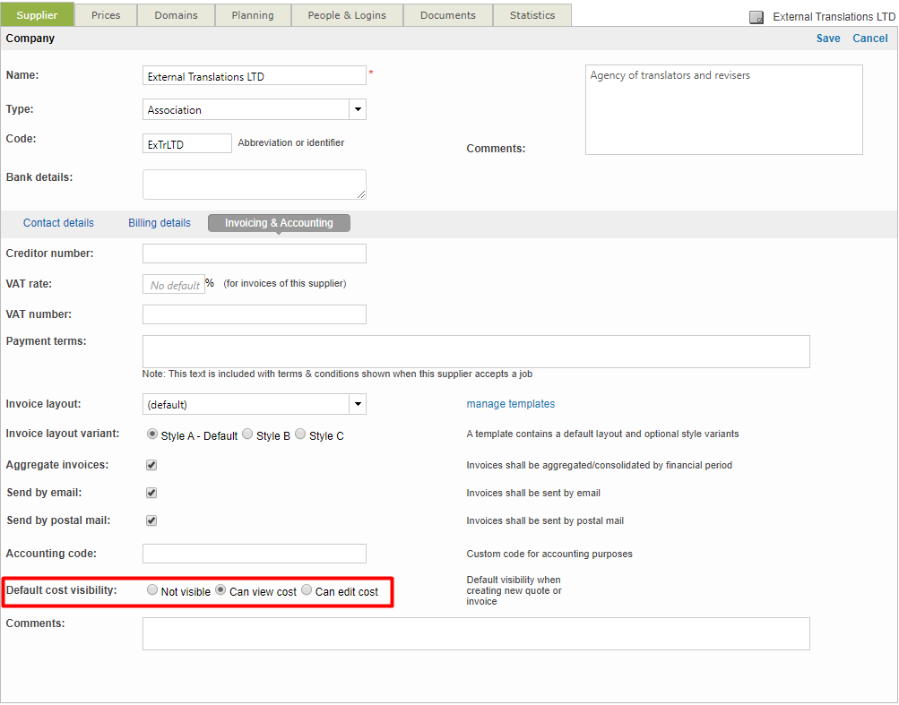 As an administrator, the first thing you will need to do in order to let your suppliers check the earnings they make by doing jobs in your Wordbee Platform is to enable the access rights that allows to see financial details on their company.