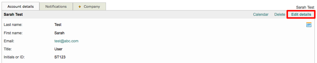 If you need to make changes to a user's name, email, etc., simply click on Edit Details in the top right corner of the screen.