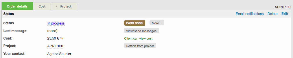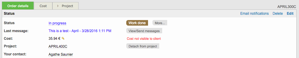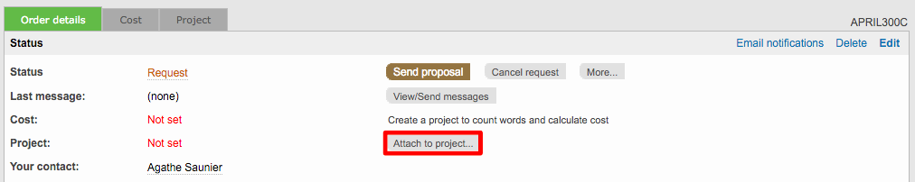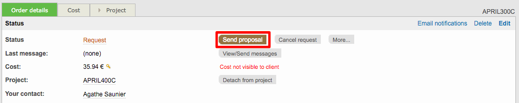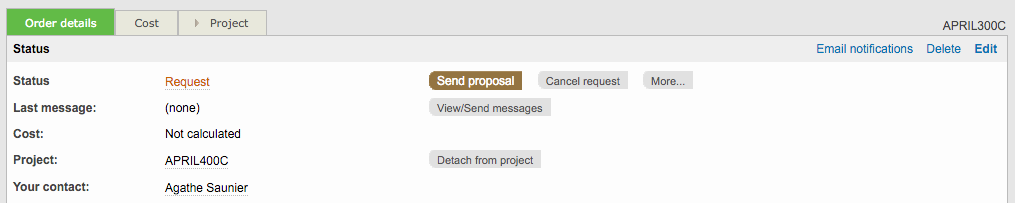 If you have decided to use the order form to automatically create the projects but you wish to keep control of supplier costs and the results to be delivered, your request will appear as shown below: