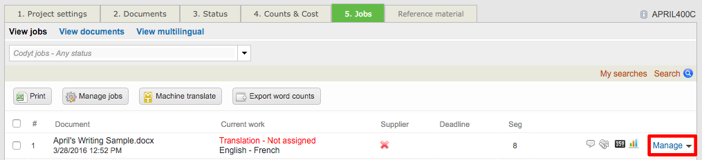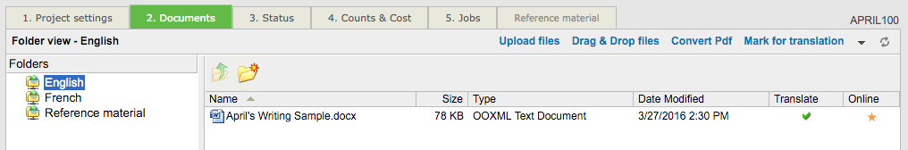 For more information about marking documents for translation in CoDyt Projects, please see the Upload your documents page in the Getting Started Guide.