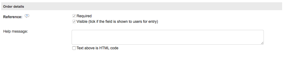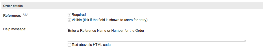 The Reference setting determines whether or not a client is able to enter a reference number or name for the order on the form. By default, this setting is set to required and made visible on the form. You may untick this option if it is not a requirement and leave it visible as an entry option (or) untick both setting choices to hide it on the order form. <need to verify this information>