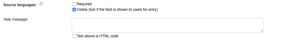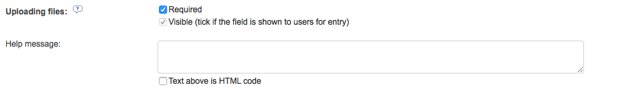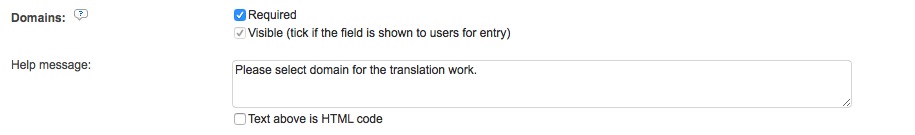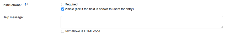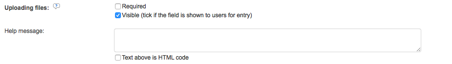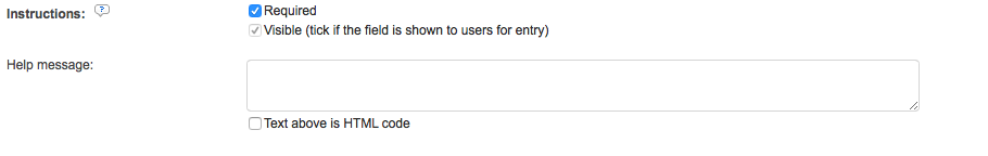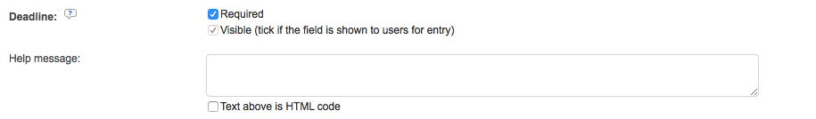 If it is required, then visible will be checked automatically. You may also enter a help message and mark the text as HTML code if needed.