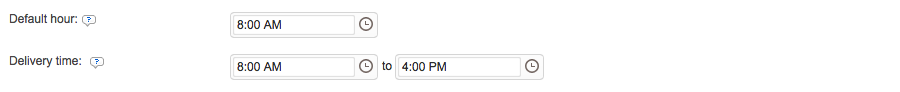 The Delivery Time is typically the hours your office is option. For example, if you operate between 8:00 AM and 4:00 PM, then these are the times to enter in this setting. As with the Default Hour setting, click on the Clock Icon for each to set the appropriate time.