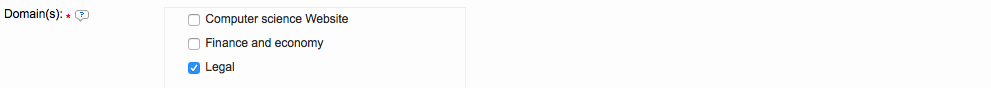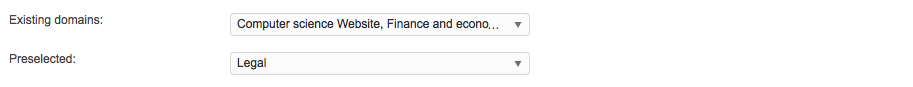 You may select one or more domains and/or subdomains to appear as existing domain selections or as a preselected domain.