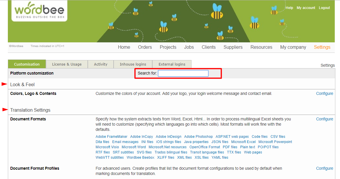 Find below a list with the sections available and learn how to configure them in the related articles:
