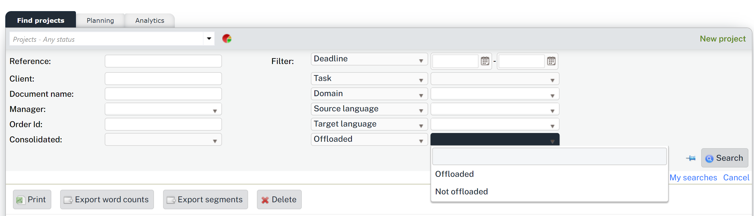 The filtering options in Wordbee Translator make it easy to search for files within offloaded projects, enhancing efficiency in retrieving essential data.