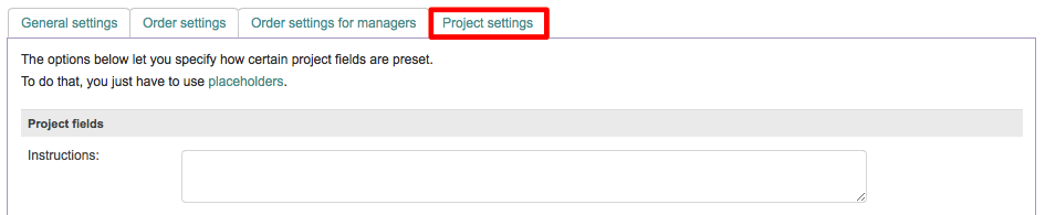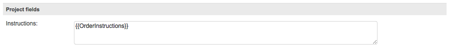To add instructions for the new project , click on the empty text field and type any desired set of instructions or use a Placeholder to automatically preset the field to contain the Order Instructions.