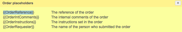 Then copy the {{OrderReference}} placeholder, as shown below: