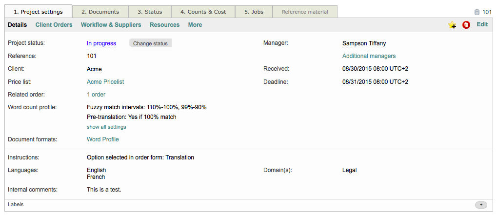 This information is essentially copied from the order form to the project details to ensure all information is provided for the service/work. Additionally, any custom comments, etc. added to the user option project settings will appear here as well.