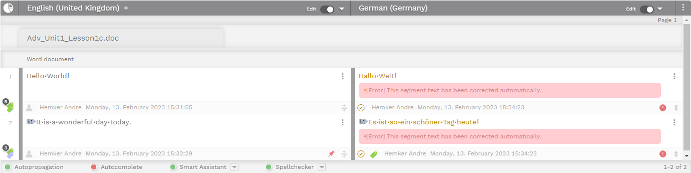 The Translation Editor is equipped with the Quick QA – a support tool for translators. It can detect and automatically correct the text formatting in segments.